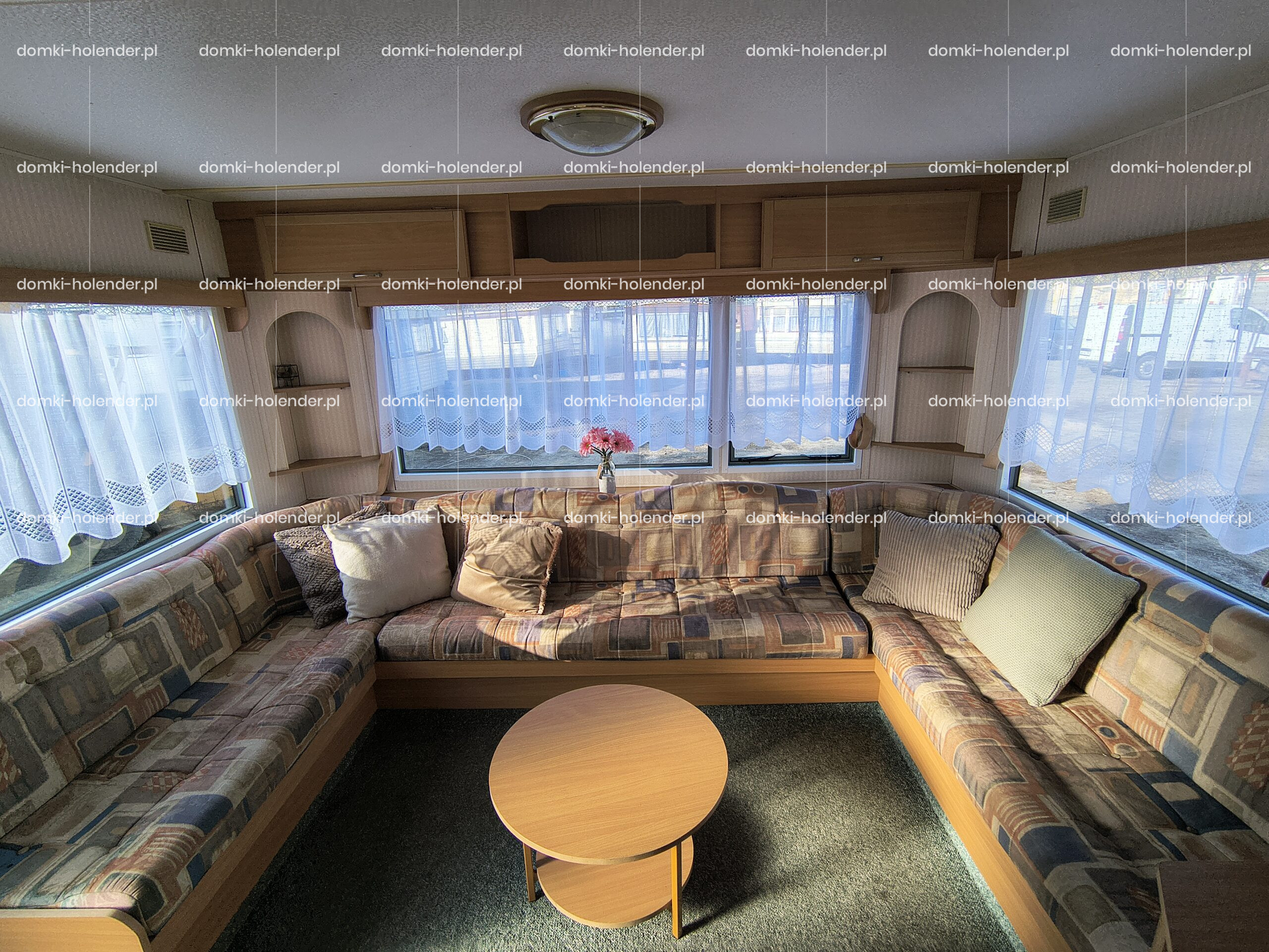 Przestronny salon z rogówką i wieloma szafkami