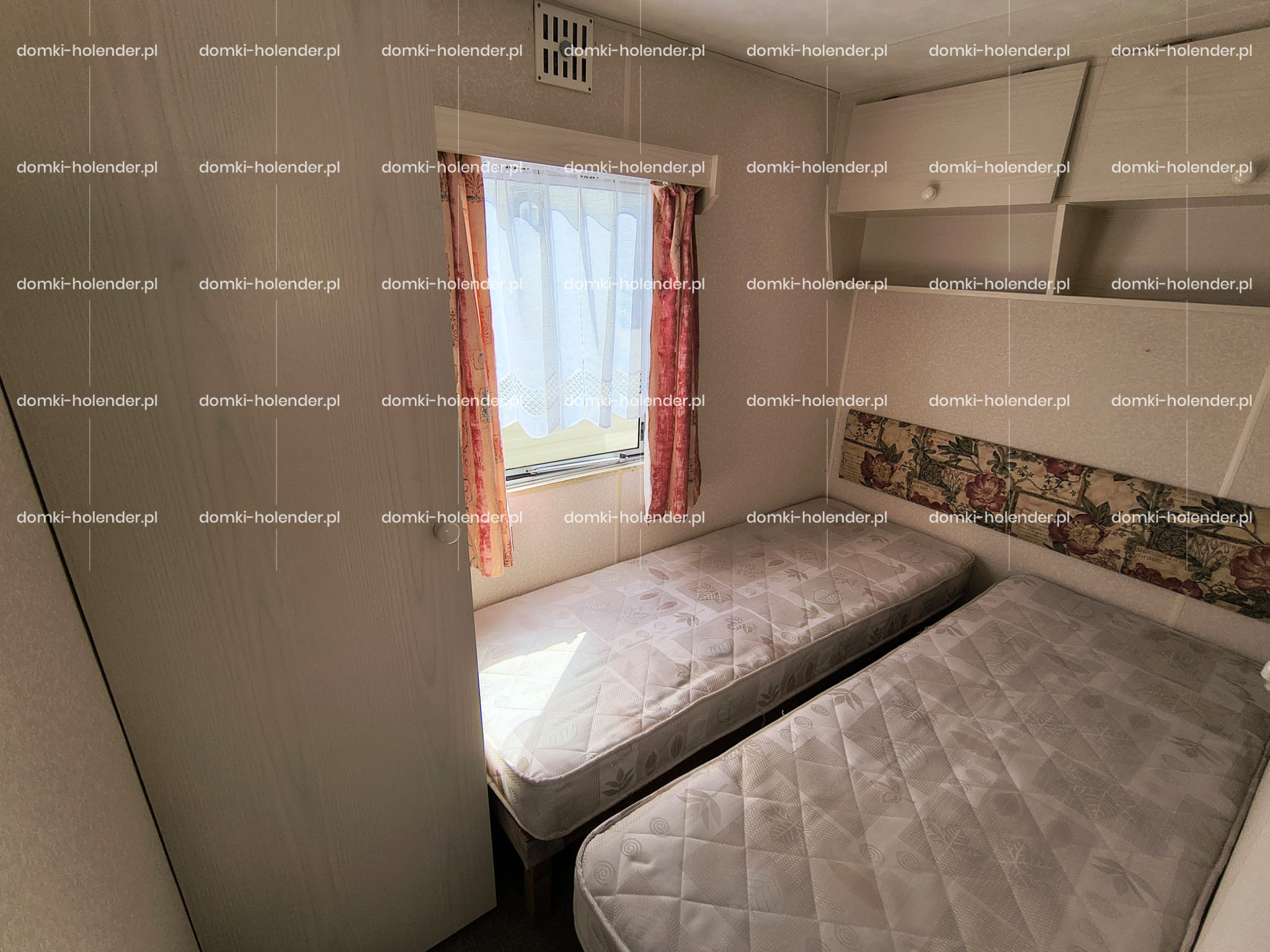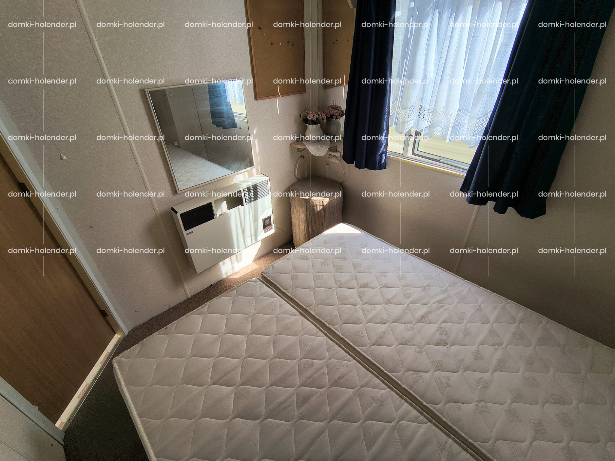 mała sypialnia z dwoma pojedynczymi łóżkami