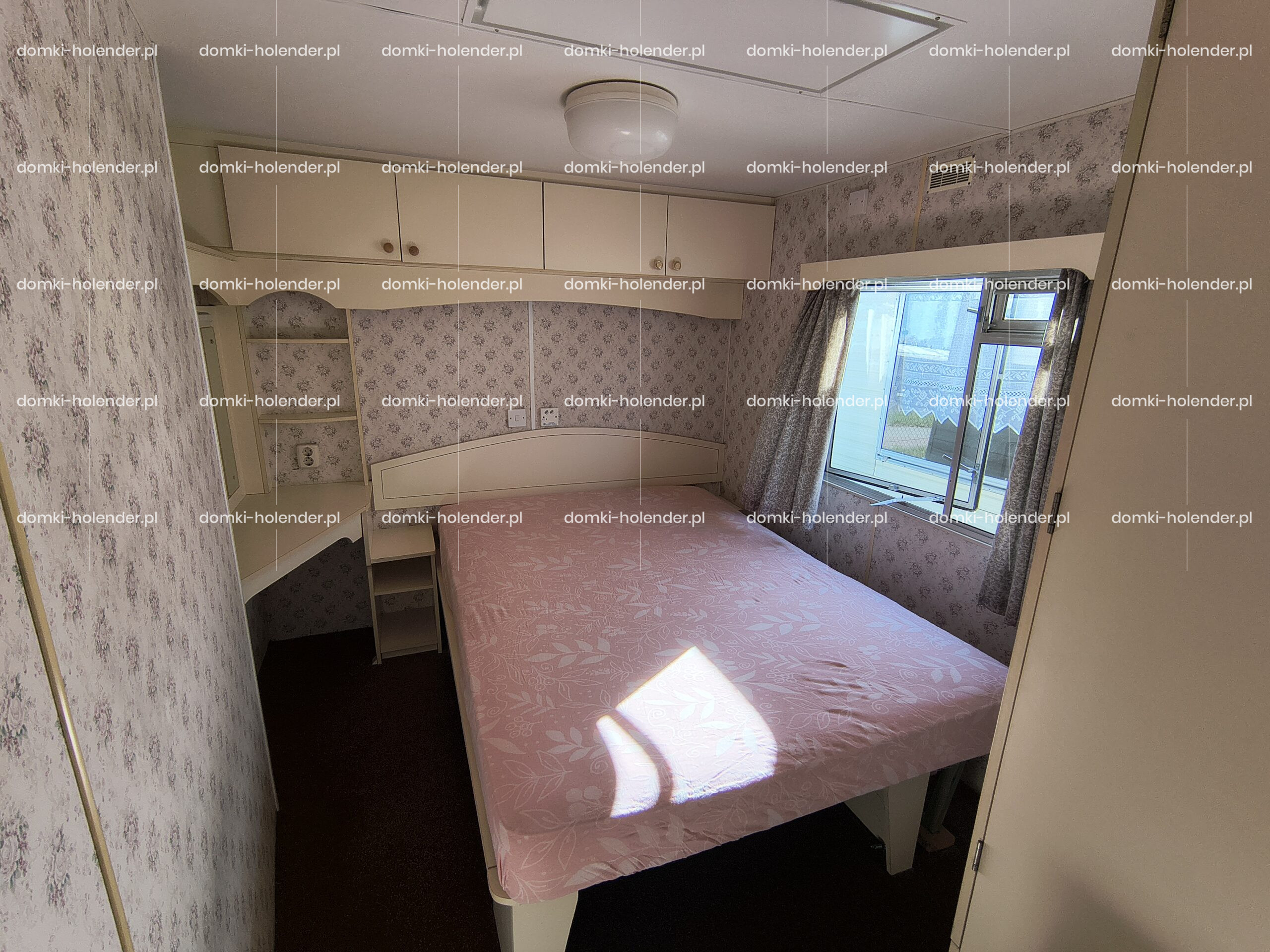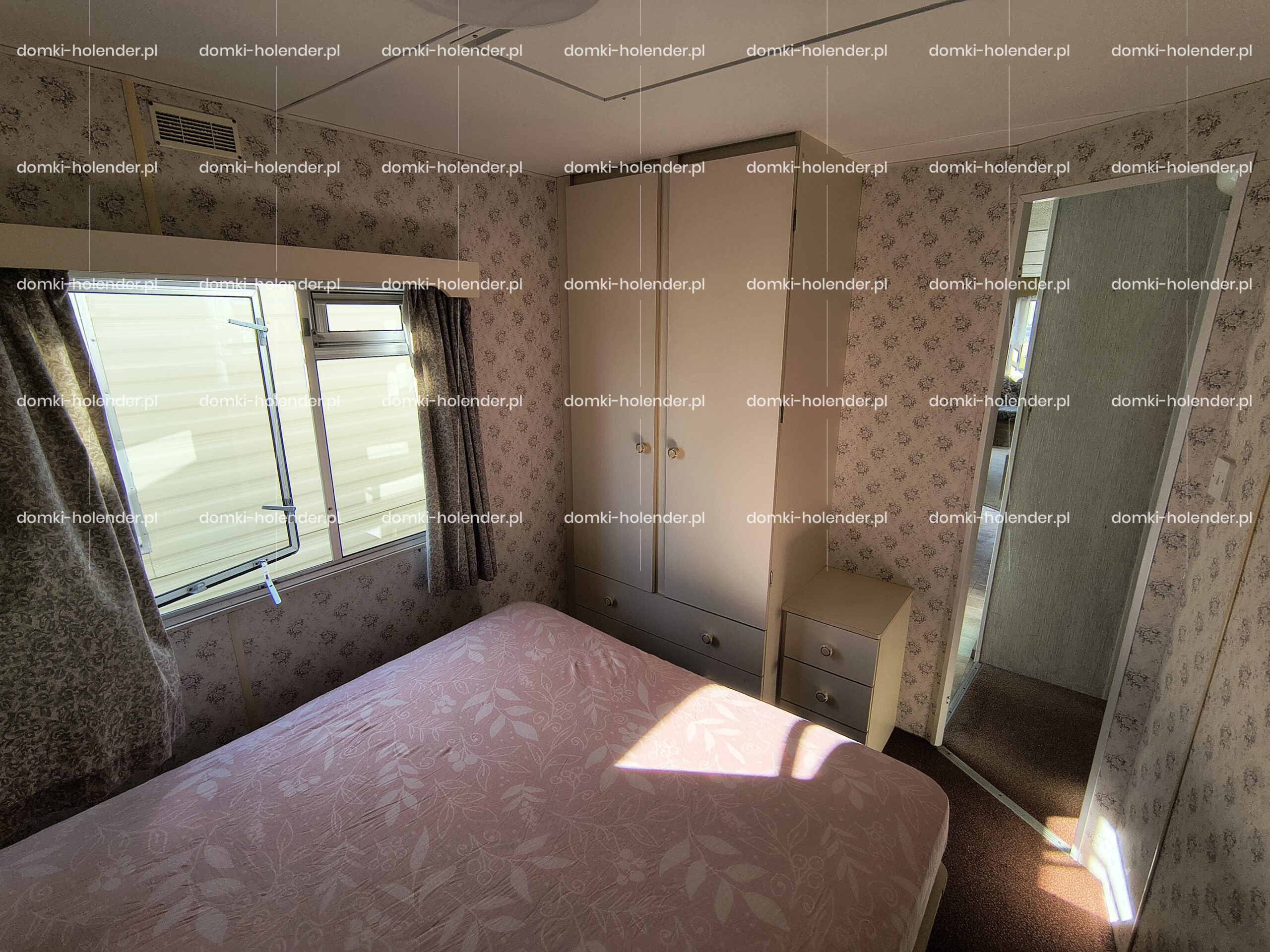 duża sypialnia z podwójnym łóżkiem szafą i szafkami
