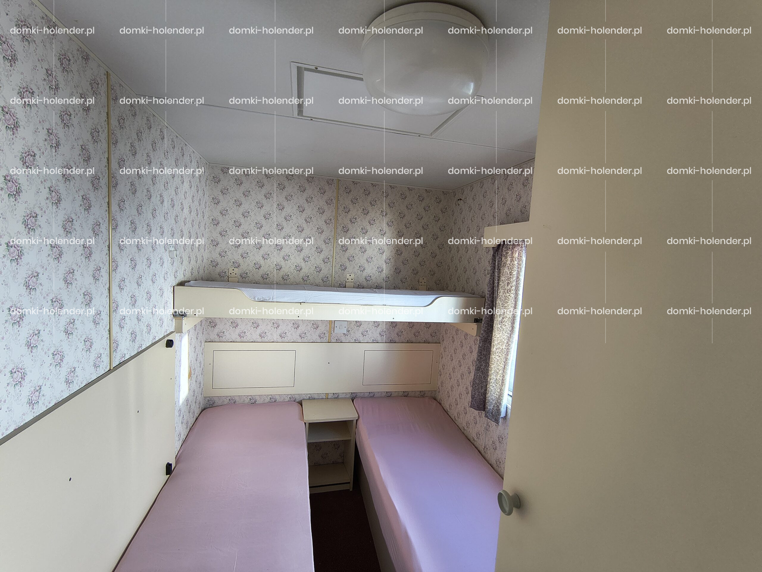 mała sypialnia z dwoma pojedynczymi łóżkami ł,óżkiem piętrowym i szafą